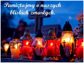 1 .Dzisiaj o godz. 1630 modlitwa różańcowa z wypominkami za zmarłych.